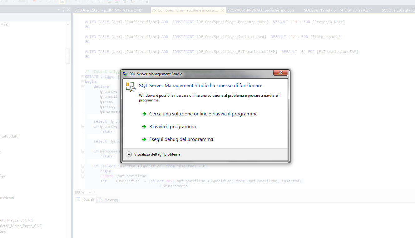 “SQL Server Management Studio ha smesso di funzionare”, a volte succede di ottenere a video questo messaggio poco simpatico.