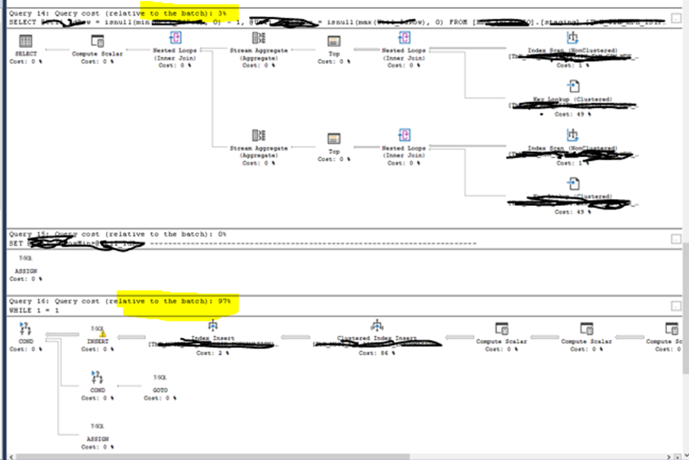 A volte l’analisi degli execution plan assegna percentuali alte di utilizzo a degli statement che sono meno invasivi di quelli che realmente rimangono in esecuzione per più tempo all’interno di una sequenza di comandi chiamati da una stored procedure.